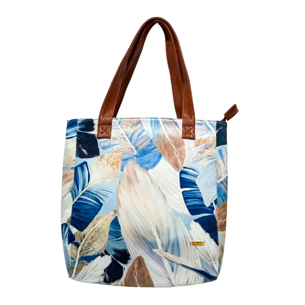 Su diseño cuenta con un cierre de cremallera, ideal para que lleves todo lo que necesites, con una increíble correa ajustable que también es desmontable. El modelo Hojas Crema Blue es ideal para las amantes de la naturaleza y la libertad, su diseño es alegre y divertido.